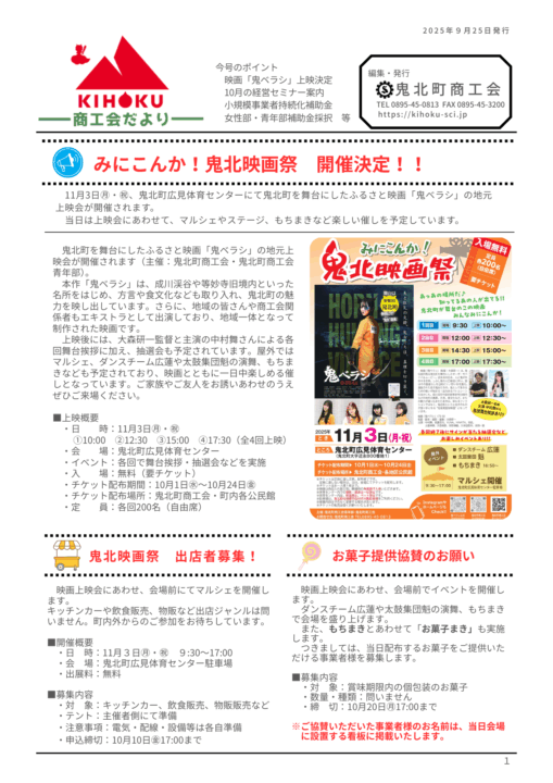 商工会からのお知らせ 鬼北町商工会だよりを発行しました 2025/9/25 令和7年9月25日発行 商工会だより 令和7年9月25日発行の「鬼北町商工会だより」を発行しました。下記アドレスよりご覧ください。 関連ファイル 令和7年9月25日発行号 商工会からのお知らせ一覧へ