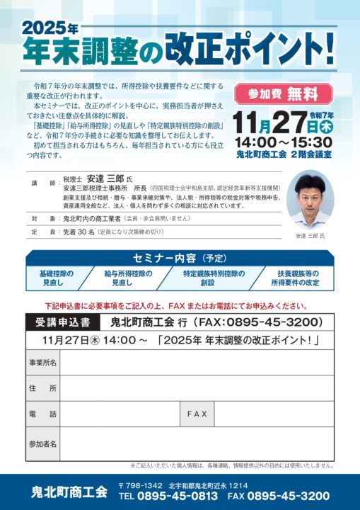 鬼北町商工会では、令和7年分の年末調整に向け、